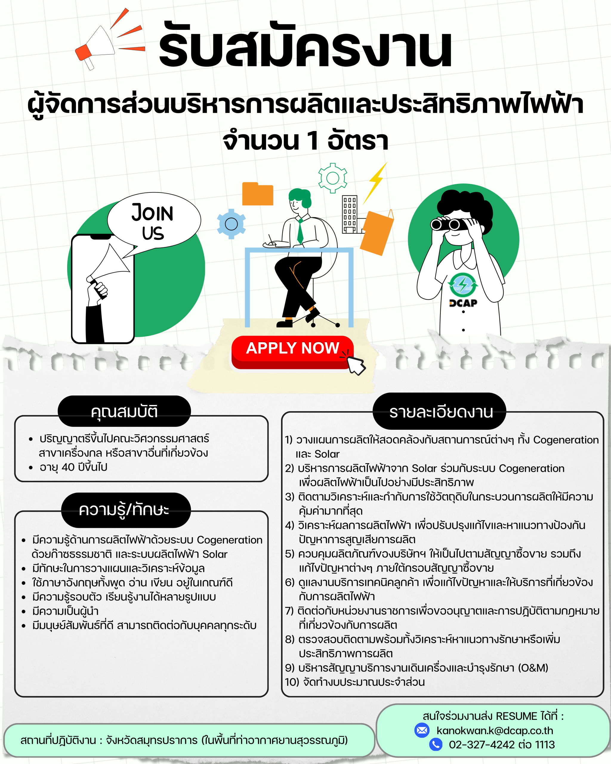 รับสมัครงานตำแหน่ง : ผู้จัดการส่วนบริหารการผลิตและประสิทธิภาพไฟฟ้า