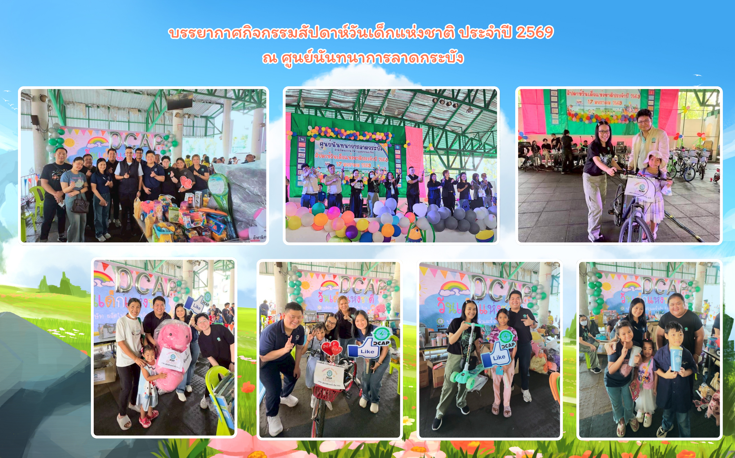 และเมื่อวันเสาร์ที่ 17 มกราคม 2569 ผู้บริหารและพนักงานของ DCAP ร่วมกับศูนย์นันทนาการลาดกระบัง ร่วมจัดกิจกรรมสัปดาห์วันเด็กแห่งชาติ ประจำปี 2569 ณ ศูนย์นันทนาการลาดกระบัง ภายในงานพบกับบูธกิจกรรมของ DCAP เล่นเกมส์จับสลากของขวัญ อาทิเช่น จักรยาน สกูตเตอร์ ของเล่นเสริมทักษะ ตุ๊กตาและอื่นๆ อีกมากมาย เพื่อส่งมอบความสุขและแบ่งปันความทรงจำดีๆ ให้แก่เด็กๆ เยาวชนและครอบครัวในชุมชนโดยรอบโรงไฟฟ้าและสนามบินสุวรรณภูมิ ที่เข้าร่วมกิจกรรม ซึ่งภายในงานเด็กๆ จะได้เพลิดเพลินร่วมเล่นเกมแสนสนุก พร้อมรับของรางวัลน่ารักๆ สุดพิเศษจากบูธกิจกรรมต่างๆ พร้อมด้วยอาหารและเครื่องดื่มภายในงาน และกิจกรรมบนเวทีจากสมาชิกศูนย์นันทนาการลาดกระบัง